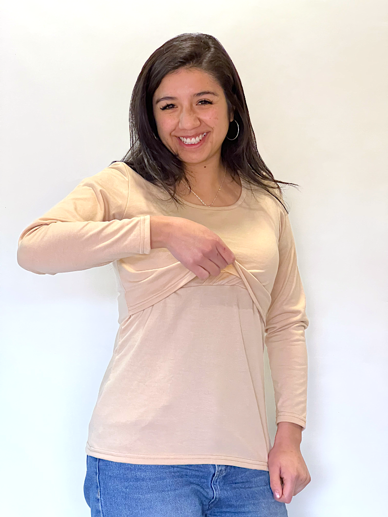 – Todas quedamos con un poquito de guatita post parto y esta polera es ideal, porque te hará sentir muy cómoda y además facilitará la lactancia donde te encuentres.