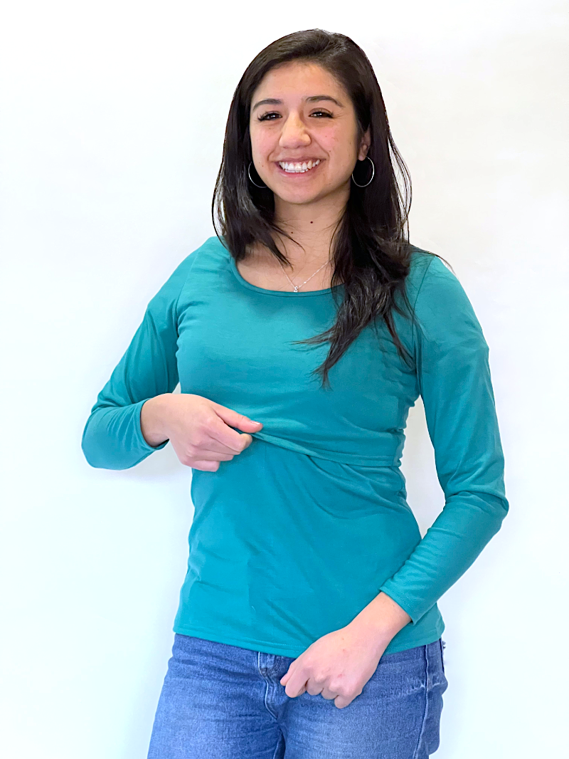 – Todas quedamos con un poquito de guatita post parto y esta polera es ideal, porque te hará sentir muy cómoda y además facilitará la lactancia donde te encuentres.
