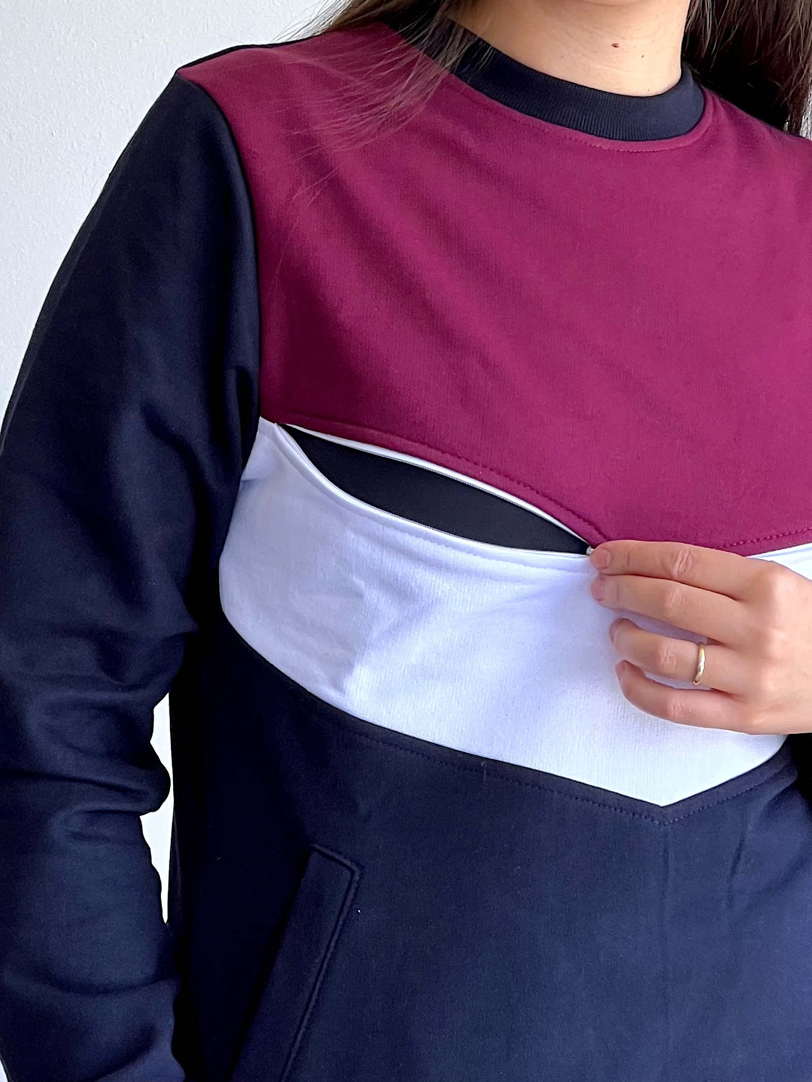 Lactancia cómoda y a todo color. Este polerón confeccionado con franela algodón, cuenta con dos cierres que permiten el uso fácil y cómodo para la lactancia.
